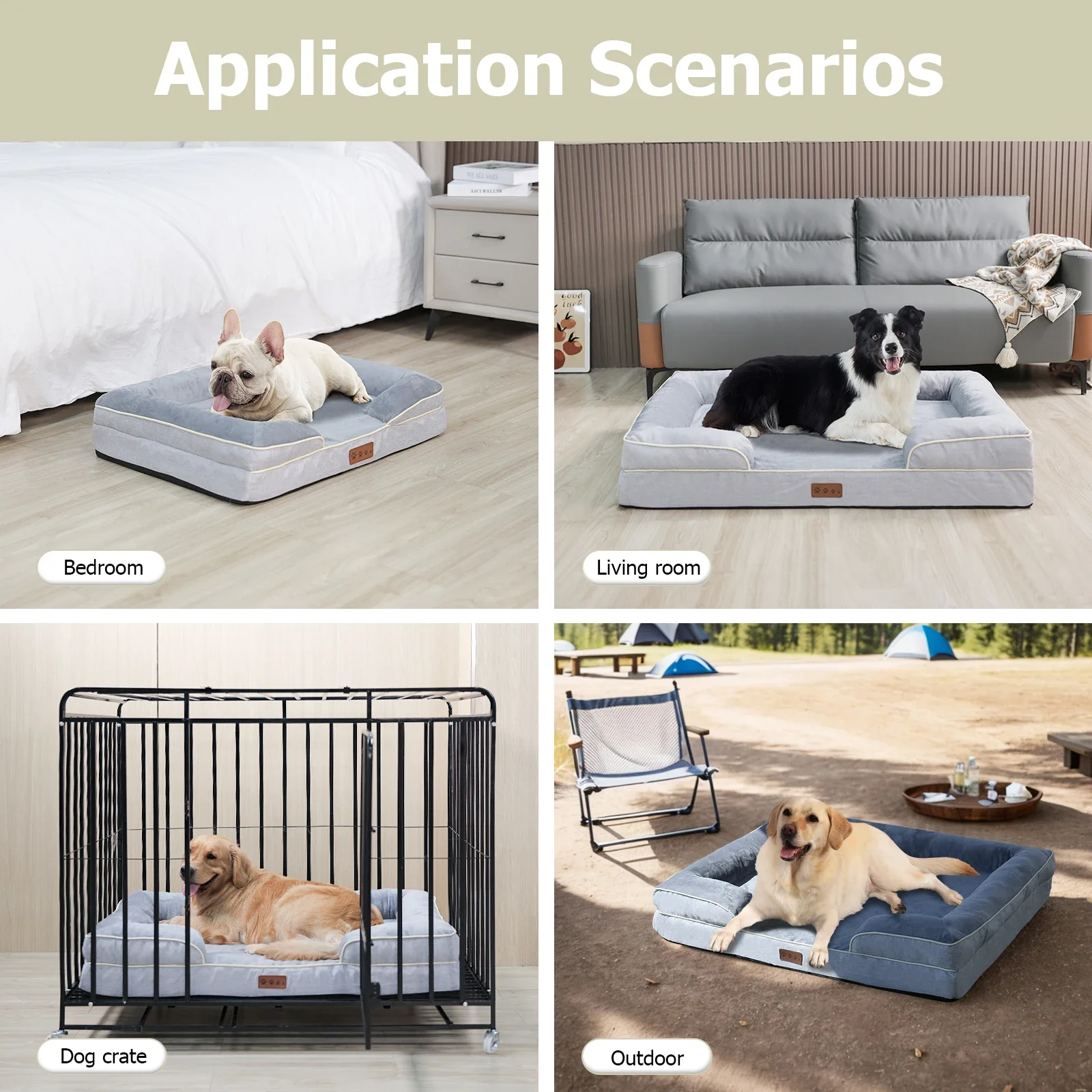 Designed specifically for large dogs, this orthopedic dog bed combines high-quality memory foam with egg-crate foam to provide consistent support and alleviate pressure points. It's carefully balanced firmness helps reduce joint stress, making it especially beneficial for senior dogs or those with arthritis. The bed is covered in a soft, plush flannel fabric that creates a cozy and inviting surface, encouraging restful sleep. Additionally, the waterproof feature protects the bed from accidents and spills, ensuring durability and easy maintenance. This bed offers a thoughtful blend of comfort, support, and practicality for your pet’s well-being.