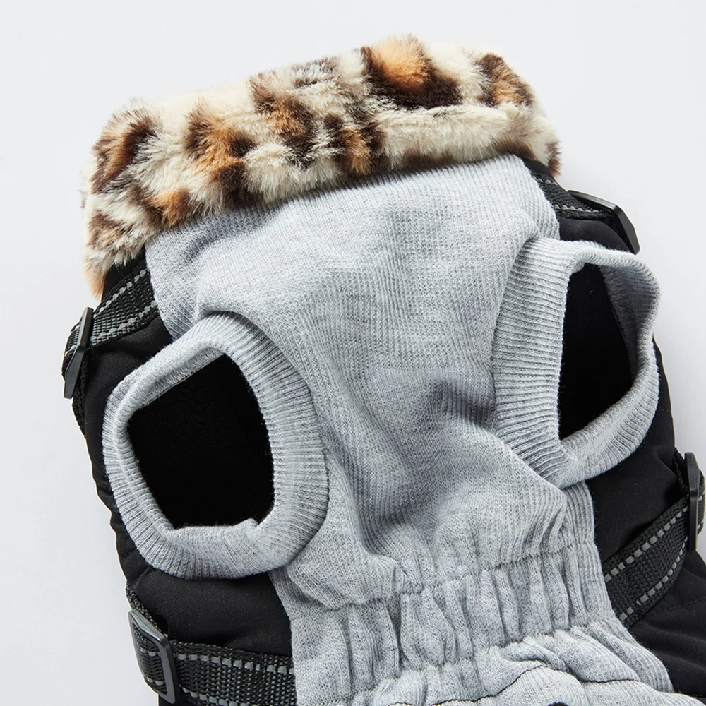 This winter warm dog jacket features a cozy fur collar and an integrated harness design, providing both comfort and security for small and medium dogs. Crafted to retain heat, it ensures your pet stays warm during cold weather outings while allowing easy leash attachment. Ideal for active dogs, this jacket combines functionality with expert-level protection against the chill.
